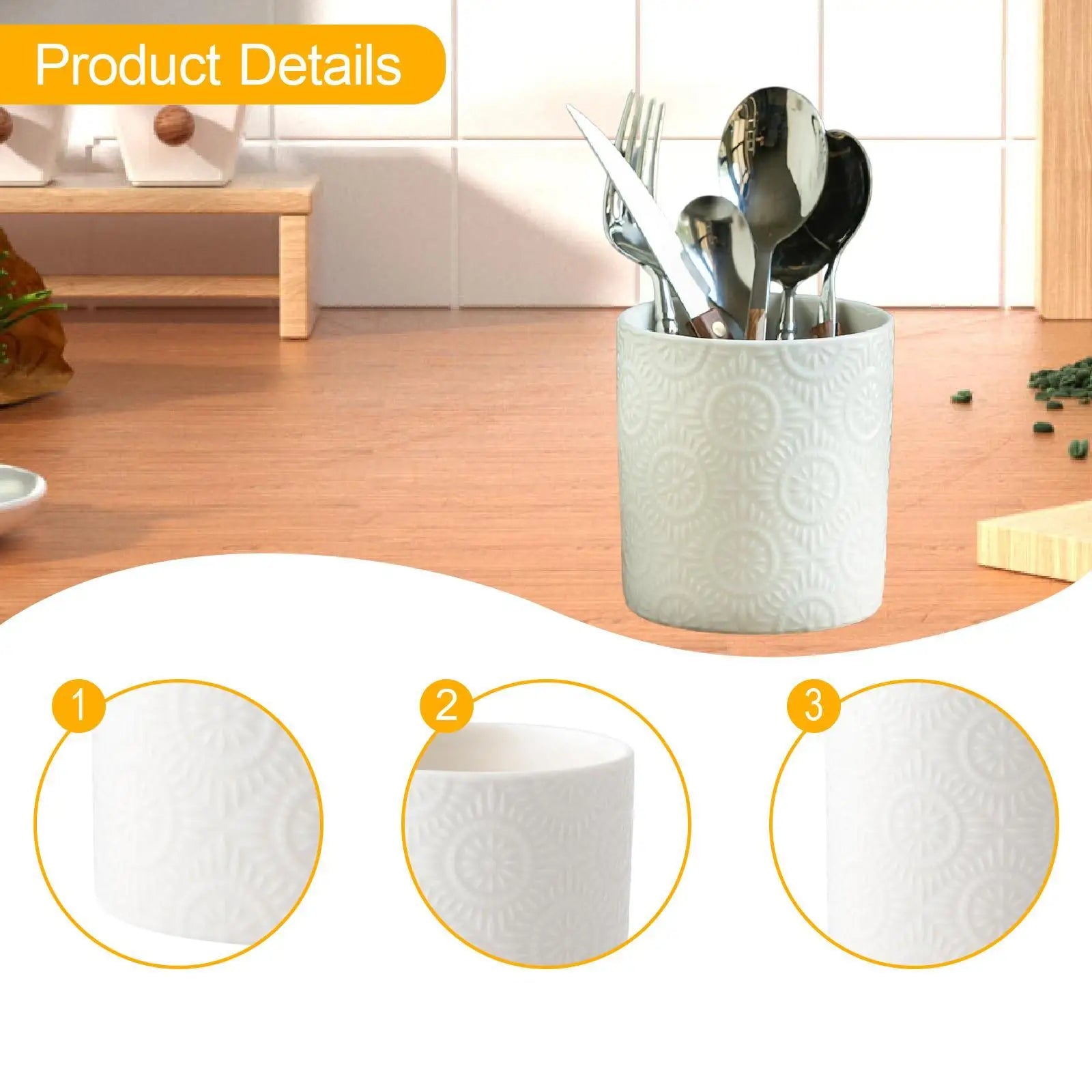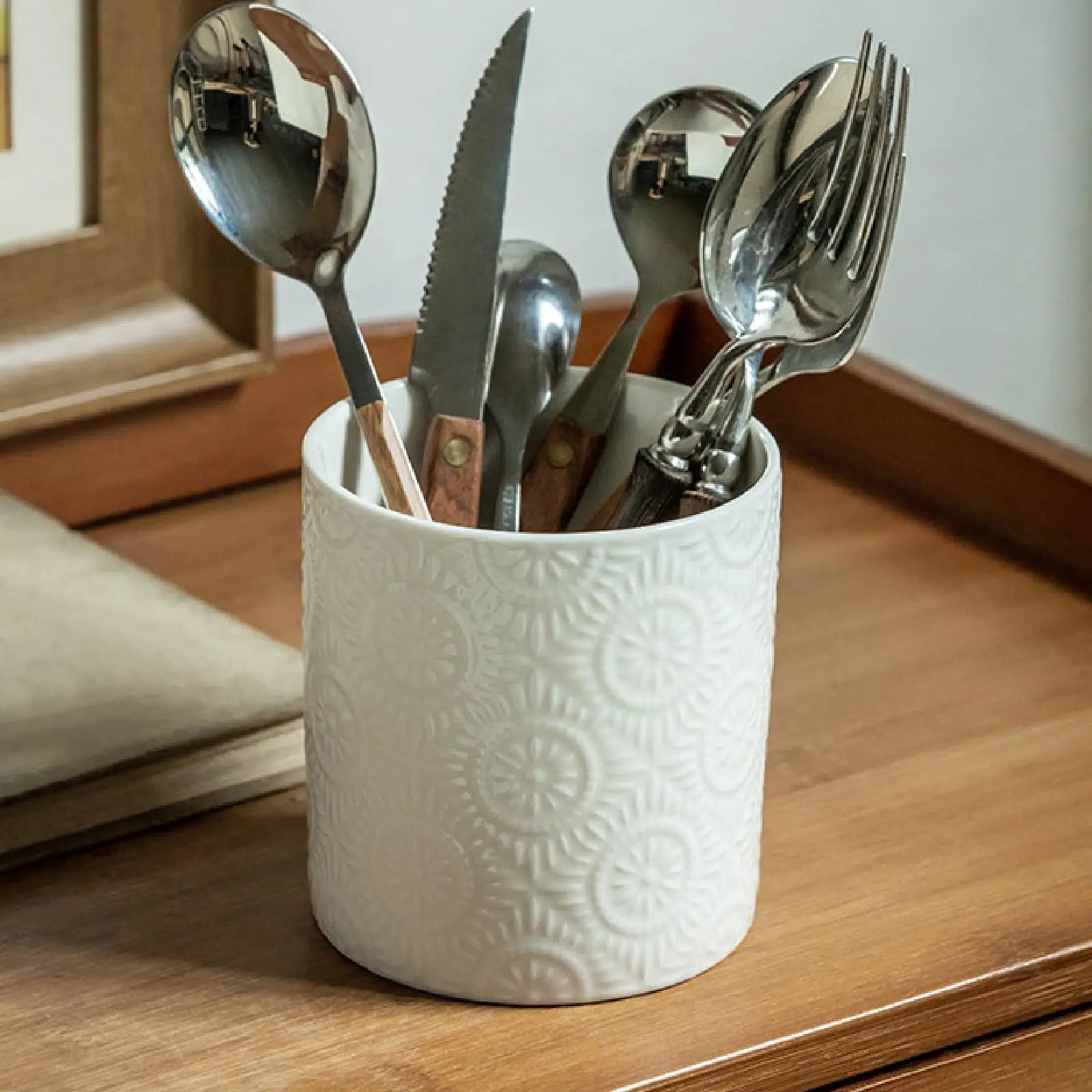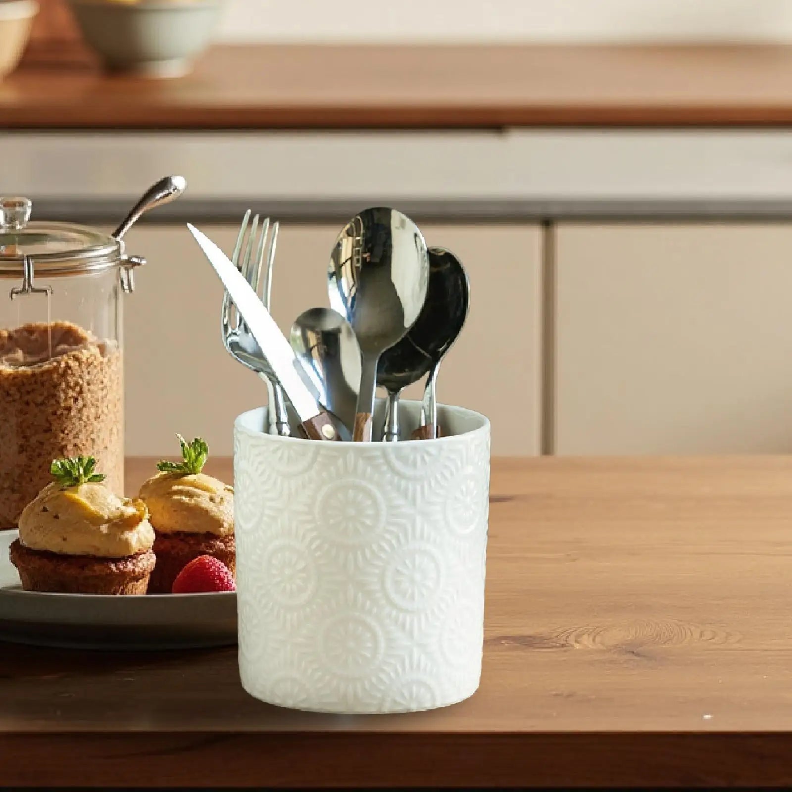 Ce porte-ustensiles en céramique allie élégance et praticité pour garder vos ustensiles de cuisine organisés et facilement accessibles. Façonné à la main en céramique durable de haute qualité, il présente une finition émaillée lisse, disponible dans divers coloris et motifs minimalistes, apportant une touche décorative sur le plan de travail ou la table. Son intérieur spacieux accueille aisément cuillères, fourchettes, couteaux, spatules et autres outils essentiels, tandis que sa base stable empêche tout renversement. Sa surface facile à nettoyer résiste aux taches et conserve son éclat au fil du temps.