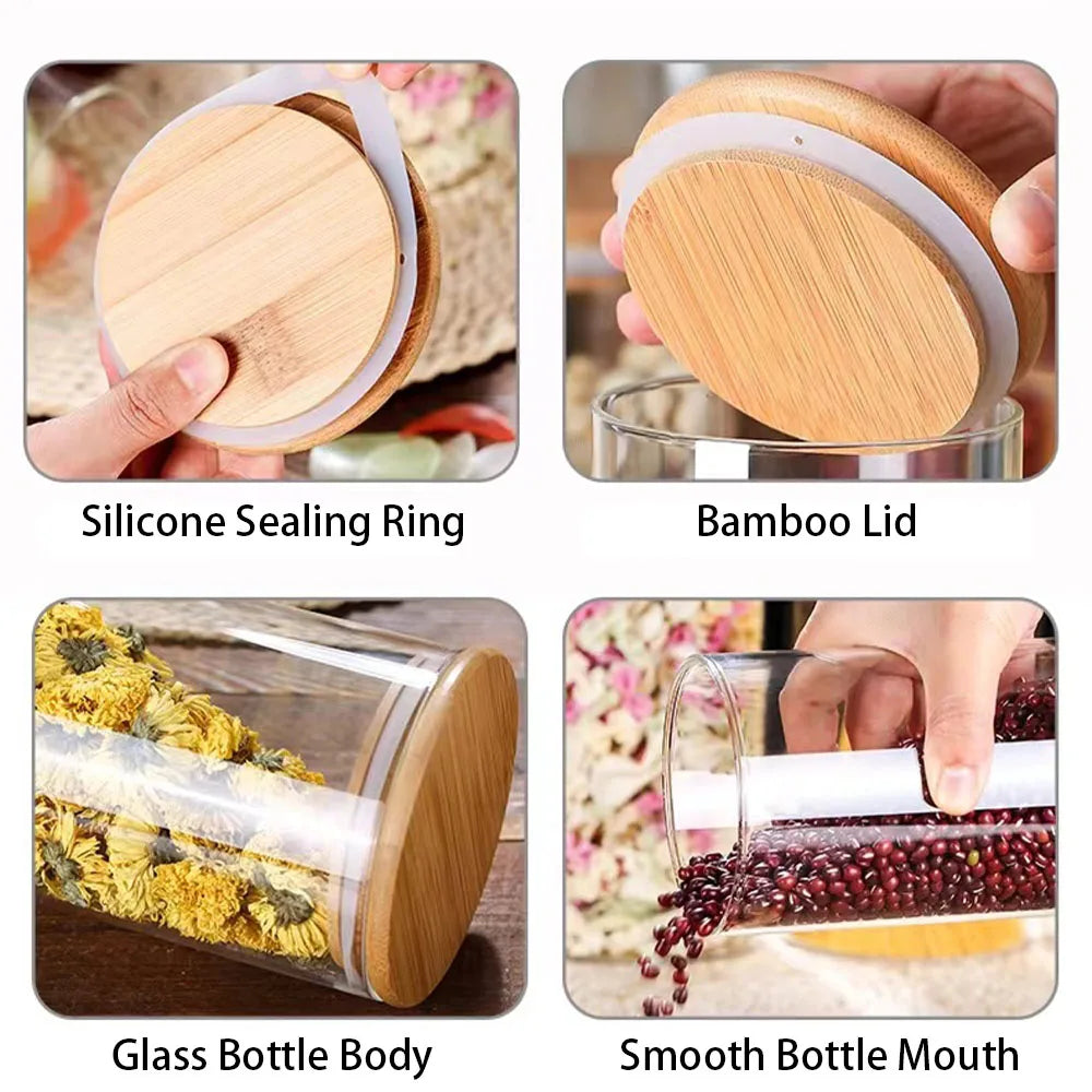 Ensemble de Bocaux en Verre avec Couvercles en Bambou